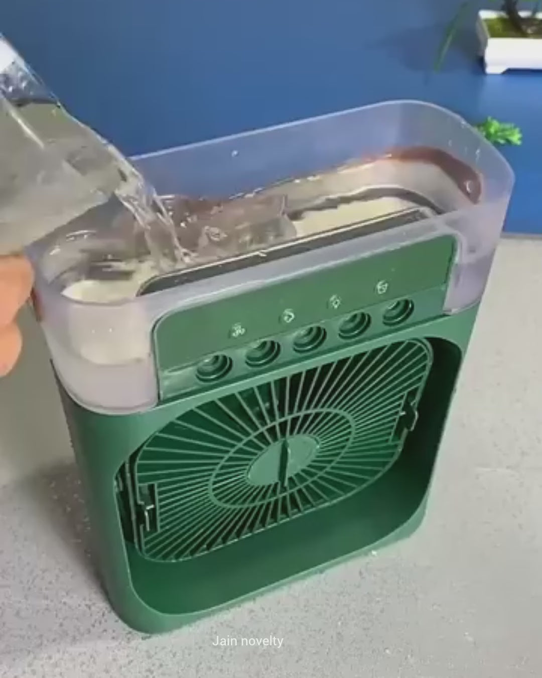 - There are three speeds: It reduces the temperature and refreshes the air through water evaporation. Please put it no more than 3ft-4ft beside you.